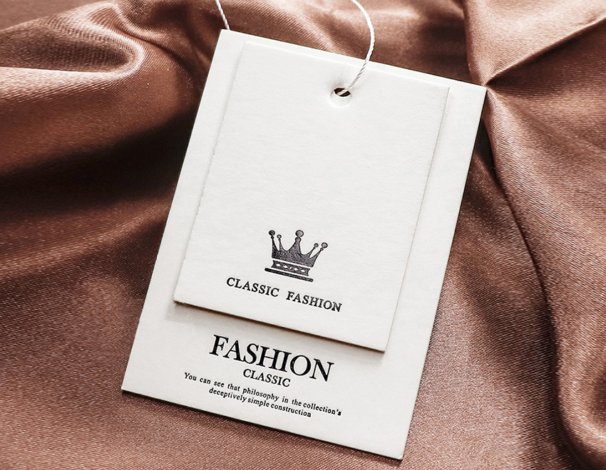 特殊工藝吊牌:服裝吊牌即各種服裝上吊掛的牌子,包含一些服裝材質,洗滌注意事項等信息。這種特殊工藝的吊牌的制作,在黑卡紙上做局部UV的圖案和標識,已達到增強吸引眼球的效果。