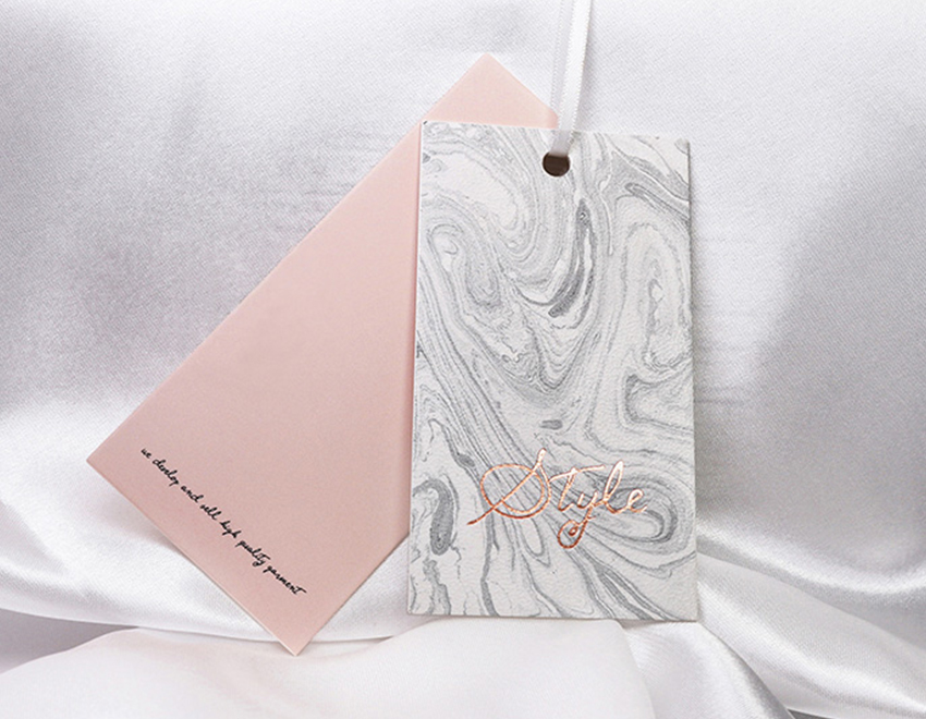 燙金吊牌,服裝吊牌即各種服裝上吊掛的牌子,包含一些服裝材質,洗滌注意事項等信息。燙金吊牌的制作材料大多為紙質,在上面燙上金色字或圖案增強檔次感。燙金工藝:燙金吊牌是提升吊牌檔次的一種常用工藝,燙金或是燙銀都有不錯的效果??瓷先ラW閃發(fā)光,是服裝的首要選擇。